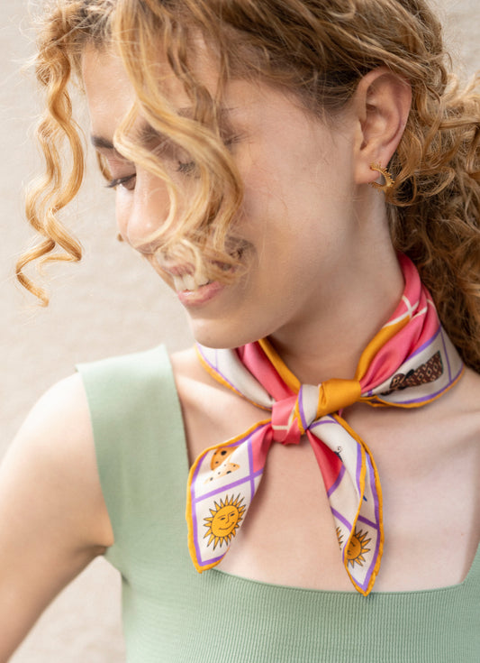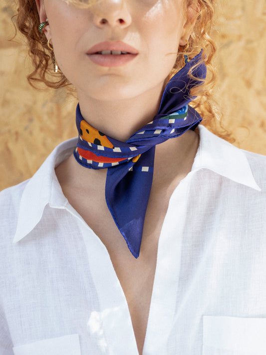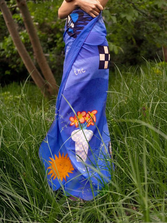 With a decade of experience in jewelry making and a mastery of the craft, I embarked on a quest to explore fresh mediums. After a long process of trial and error, I decided to weave my tales on silk & cotton. The Nazar Bazaar collection brings together an enchanting fusion of shapes, vibrant hues and playfully sophisticated narratives. Join me on this heartfelt journey as I redefine my artistry through fabric.