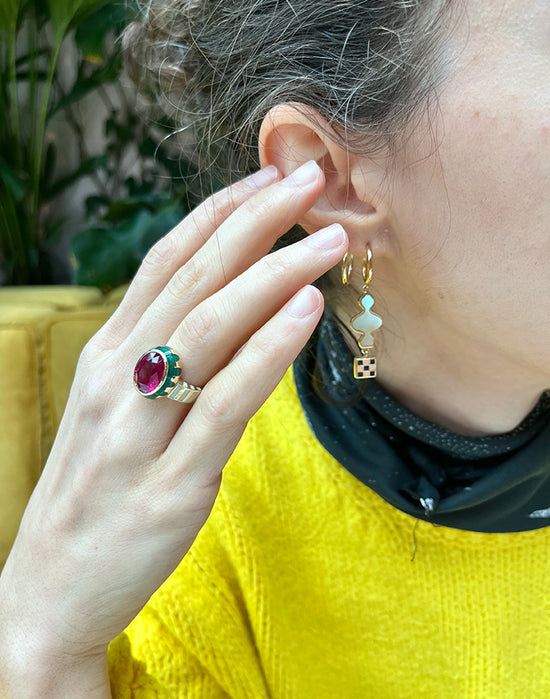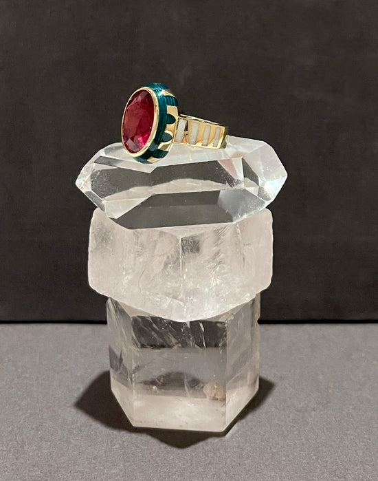 *** This Ruby, engraved, enameled and 14K ring was designed for Melike.