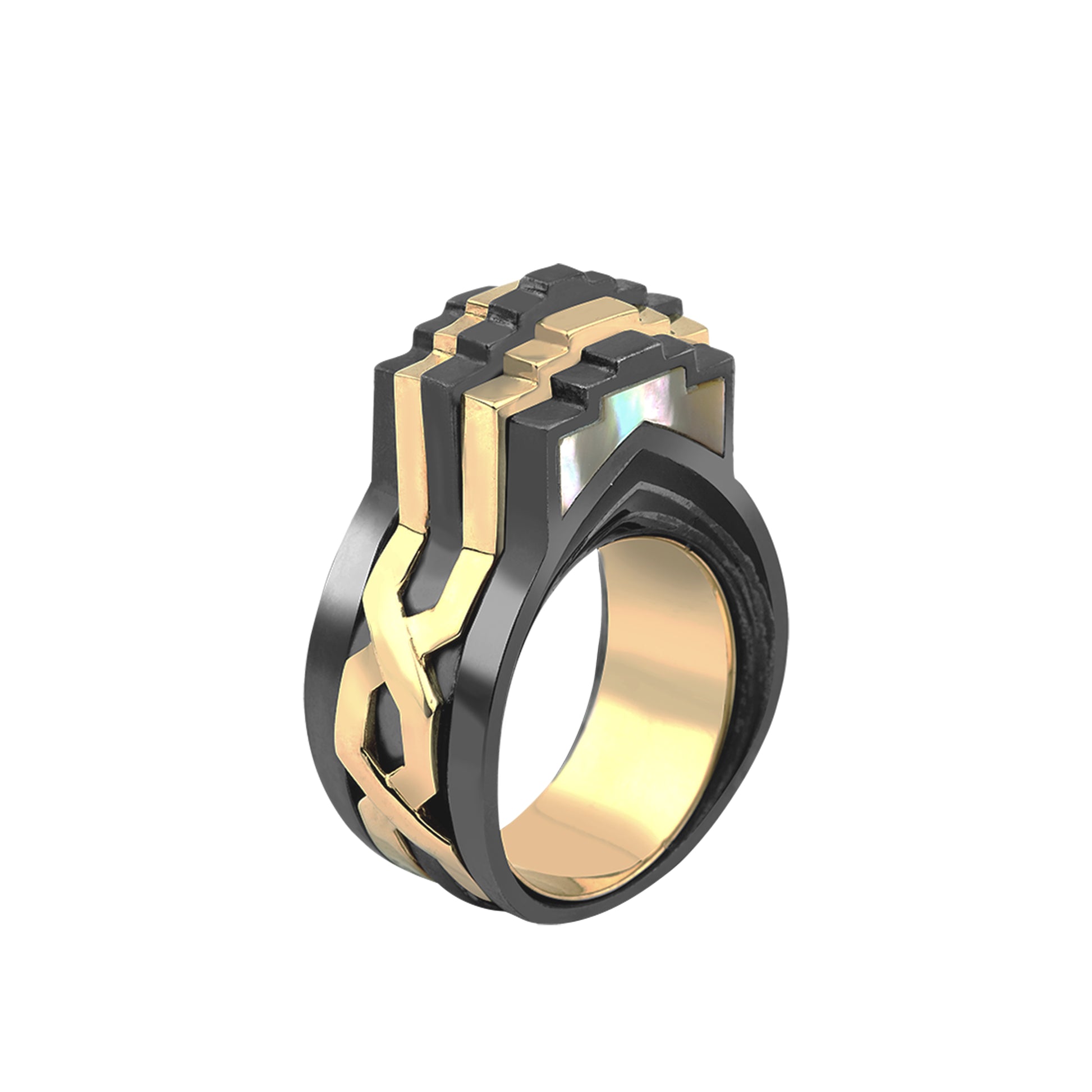 14 ct solid gold & 925 sterling silver ring featuring Australian mother-of-pearl inlay.