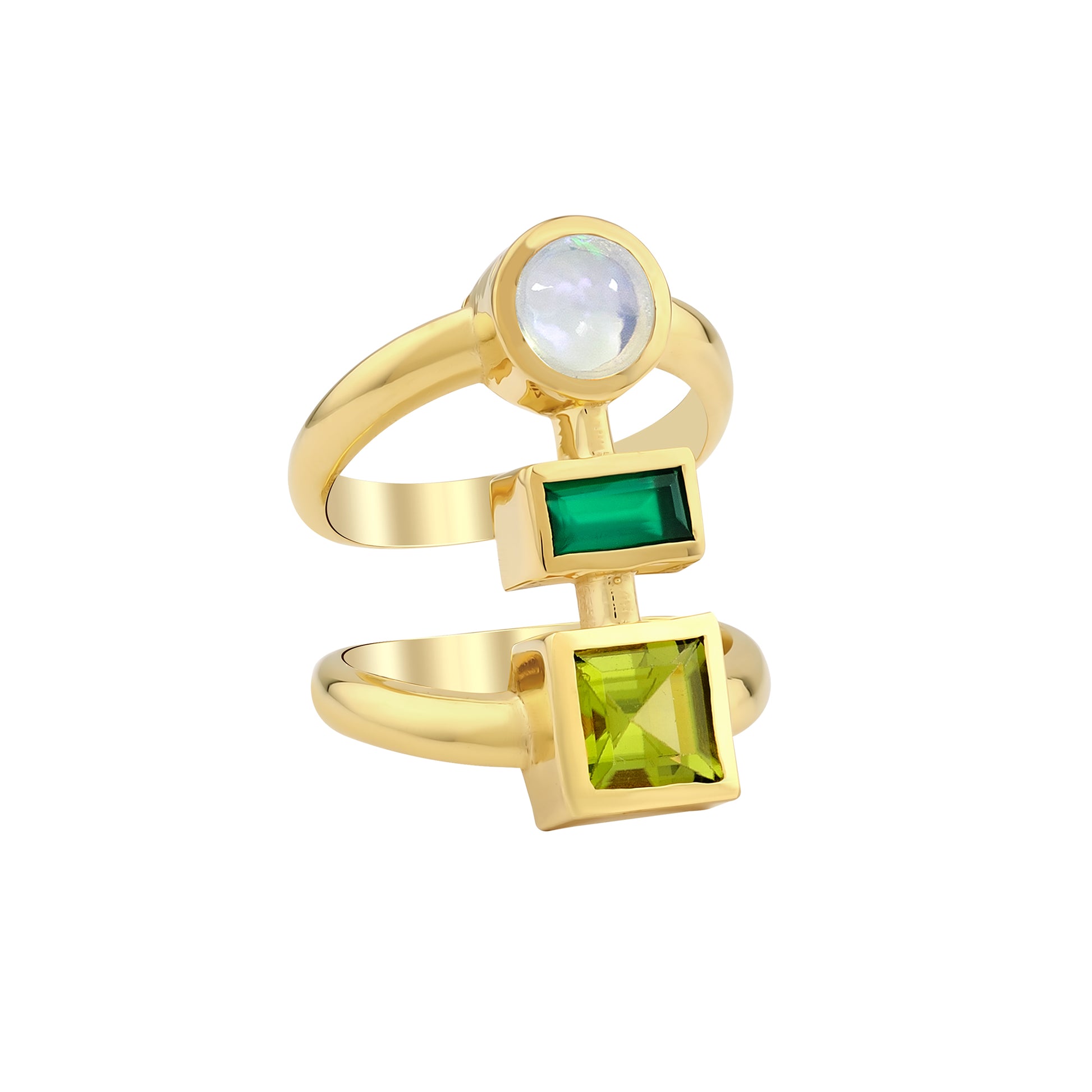 18 ct gold-plated sterling silver ring embellished with Opal, Green Onyx and Peridot stones.