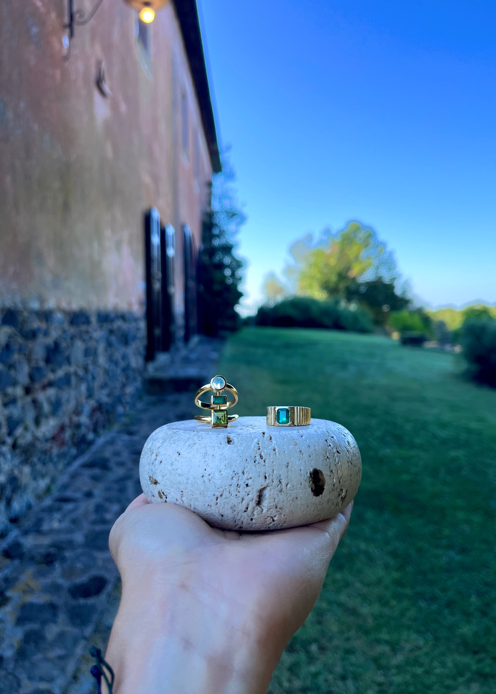 The idea behind the Amigos ring was to combine 3 obviously different shapes that had the same width - which would bring balance to their diversity. And to choose unique yet complementary colors for each shape - which would create harmony. The Amigos represents friendship and harmony.