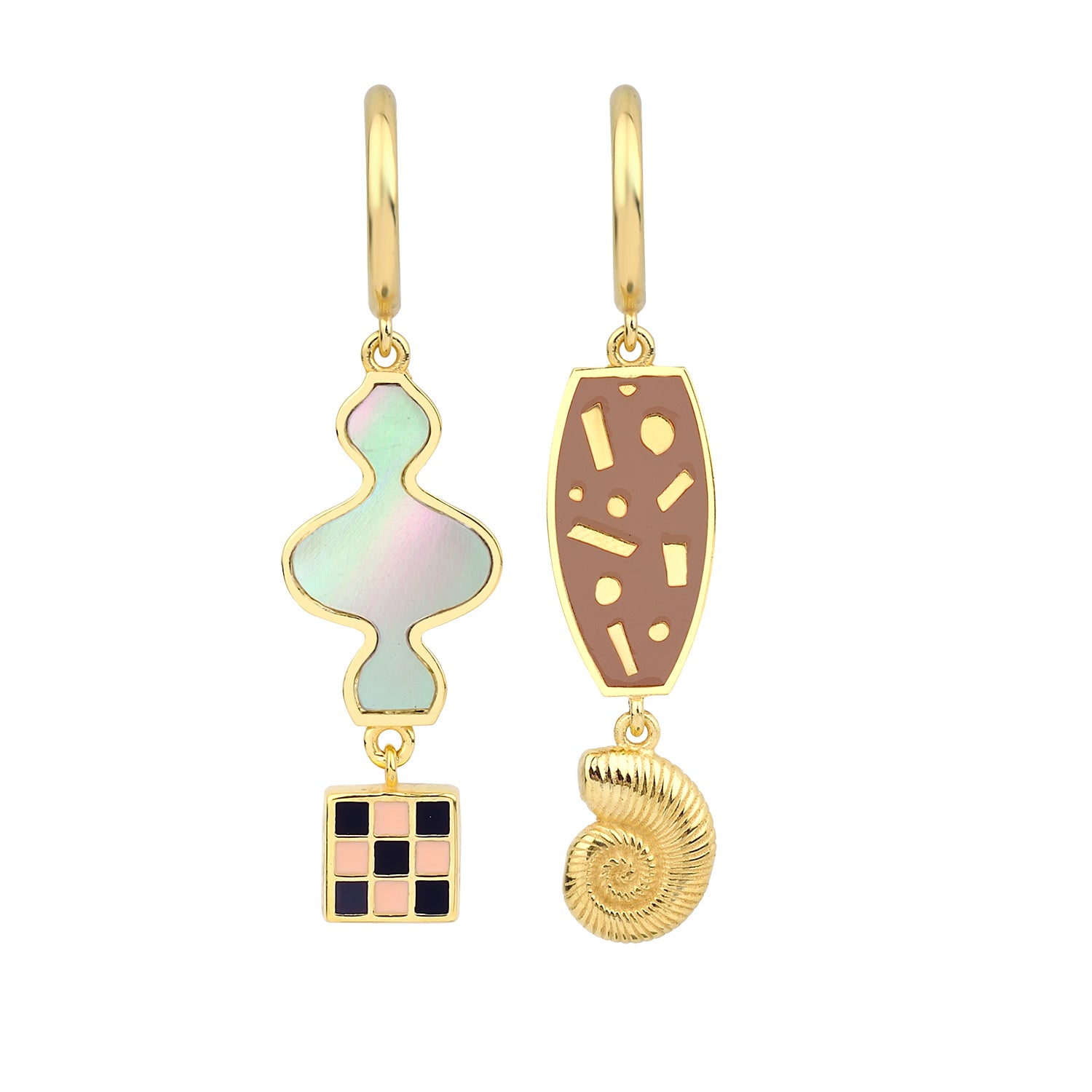 18ct gold-plated sterling silver earrings featuring enamel and Australian mother-of-pearl handcrafted inlay.