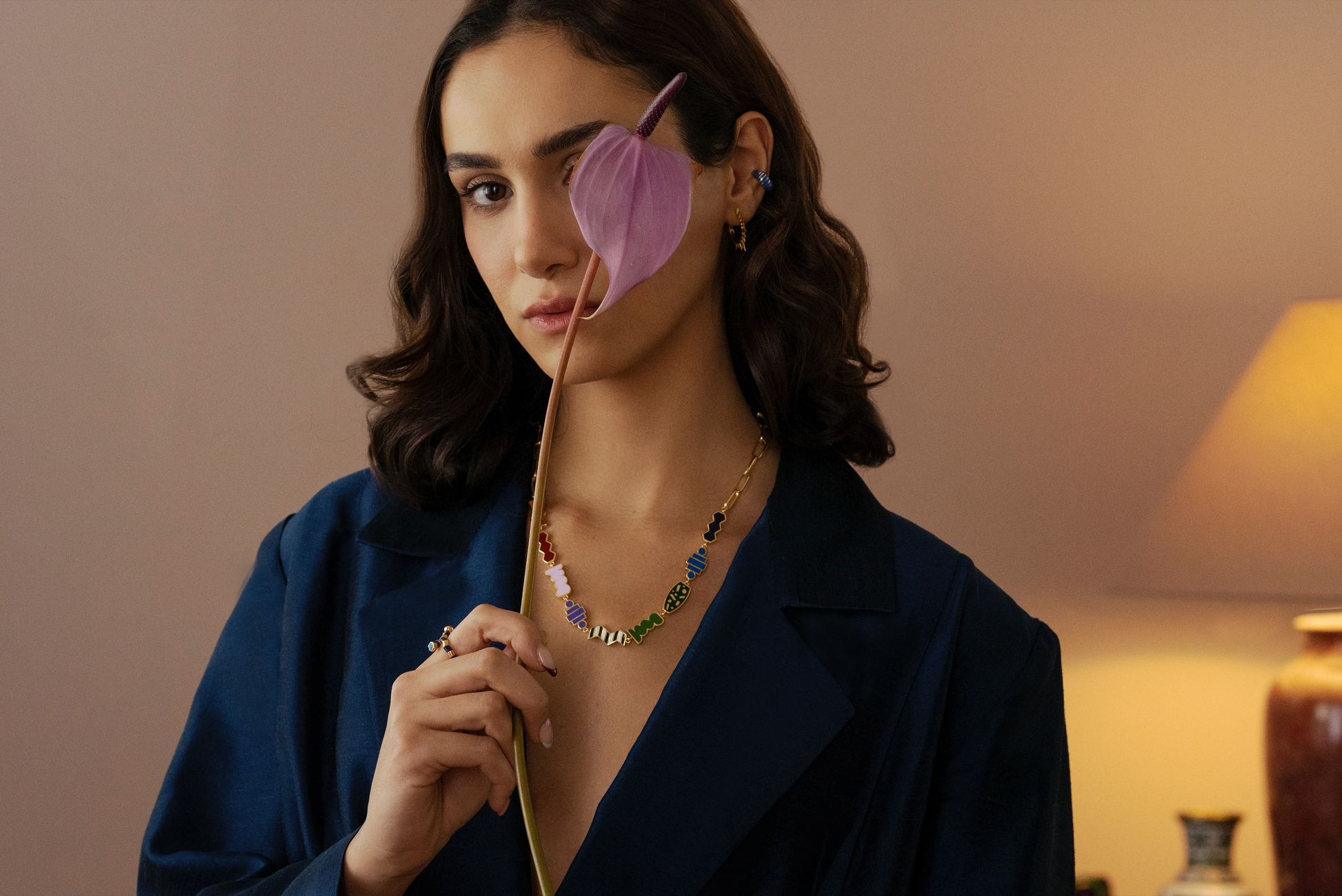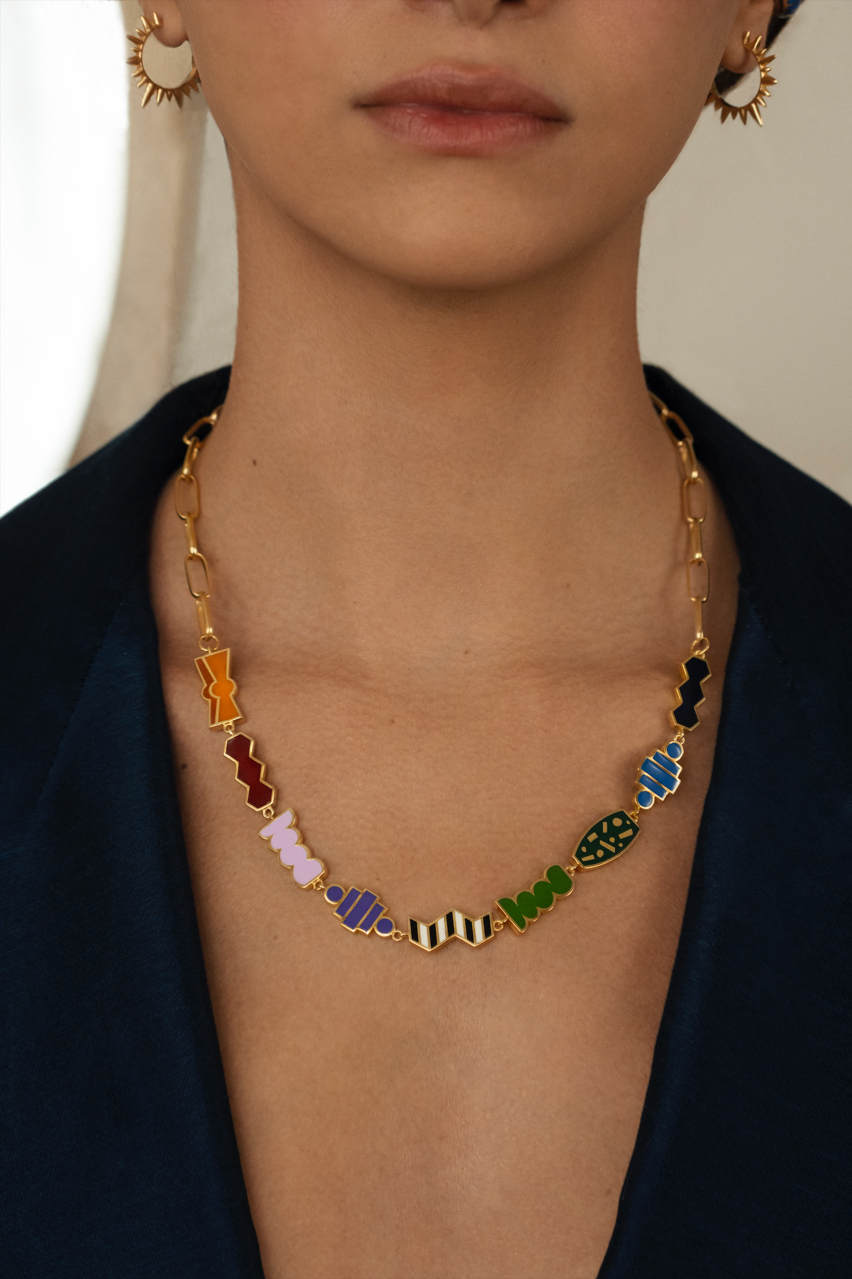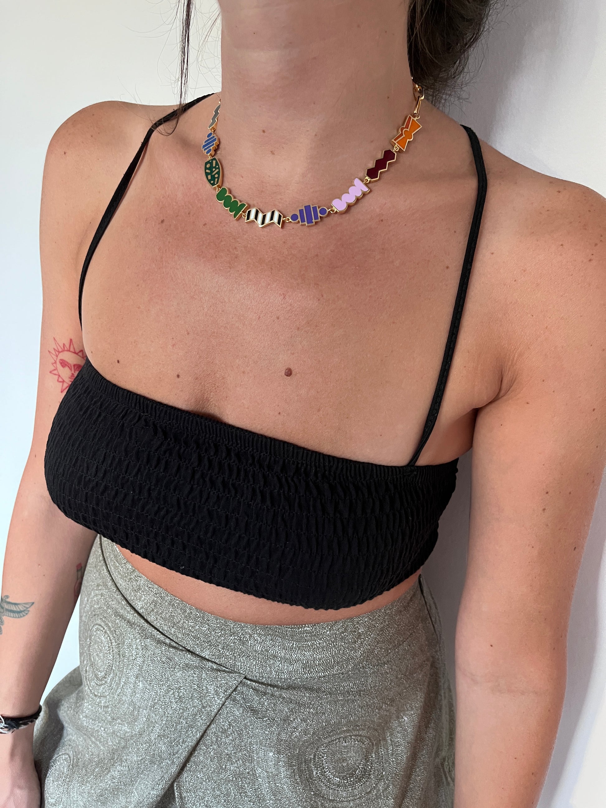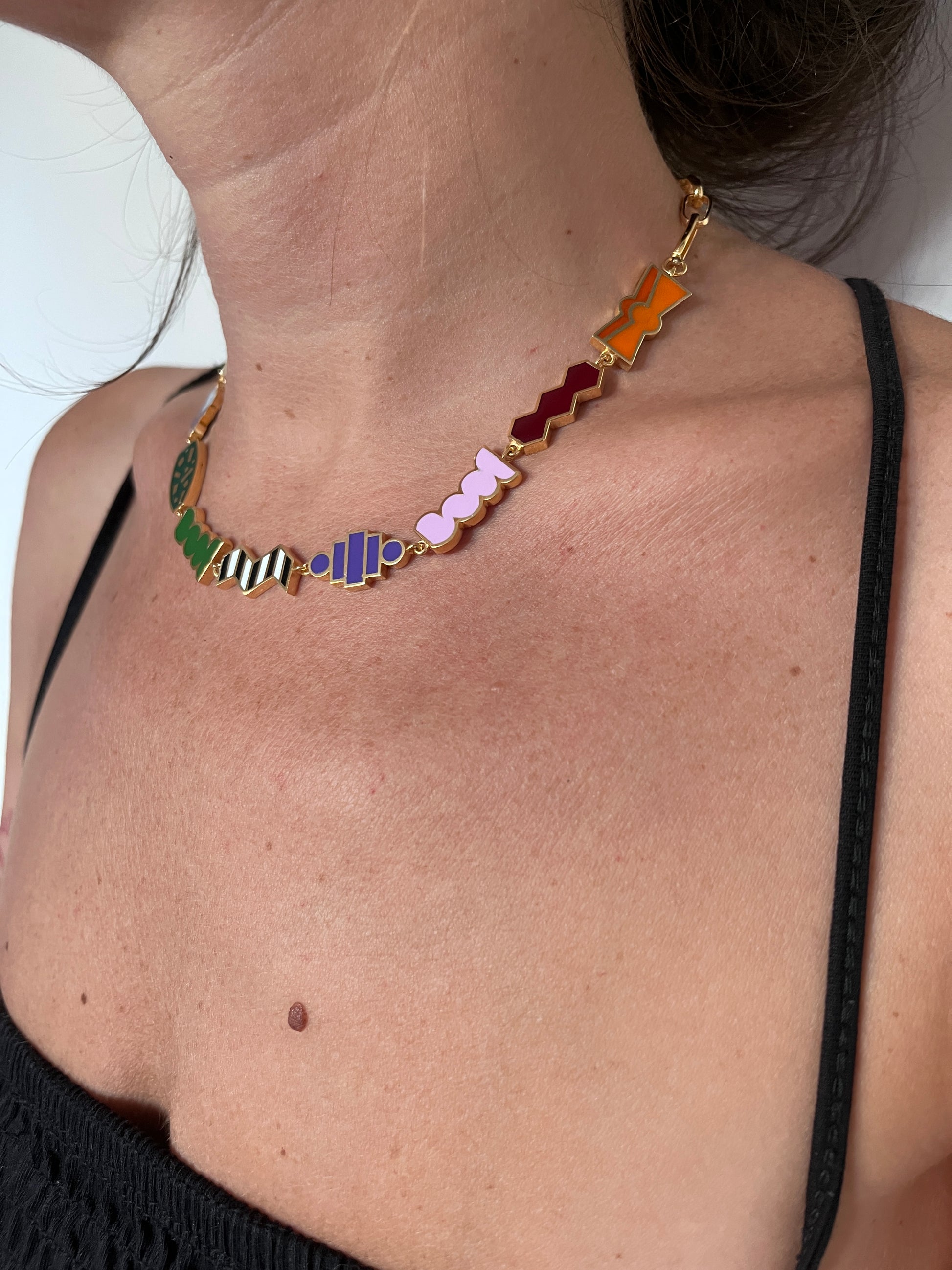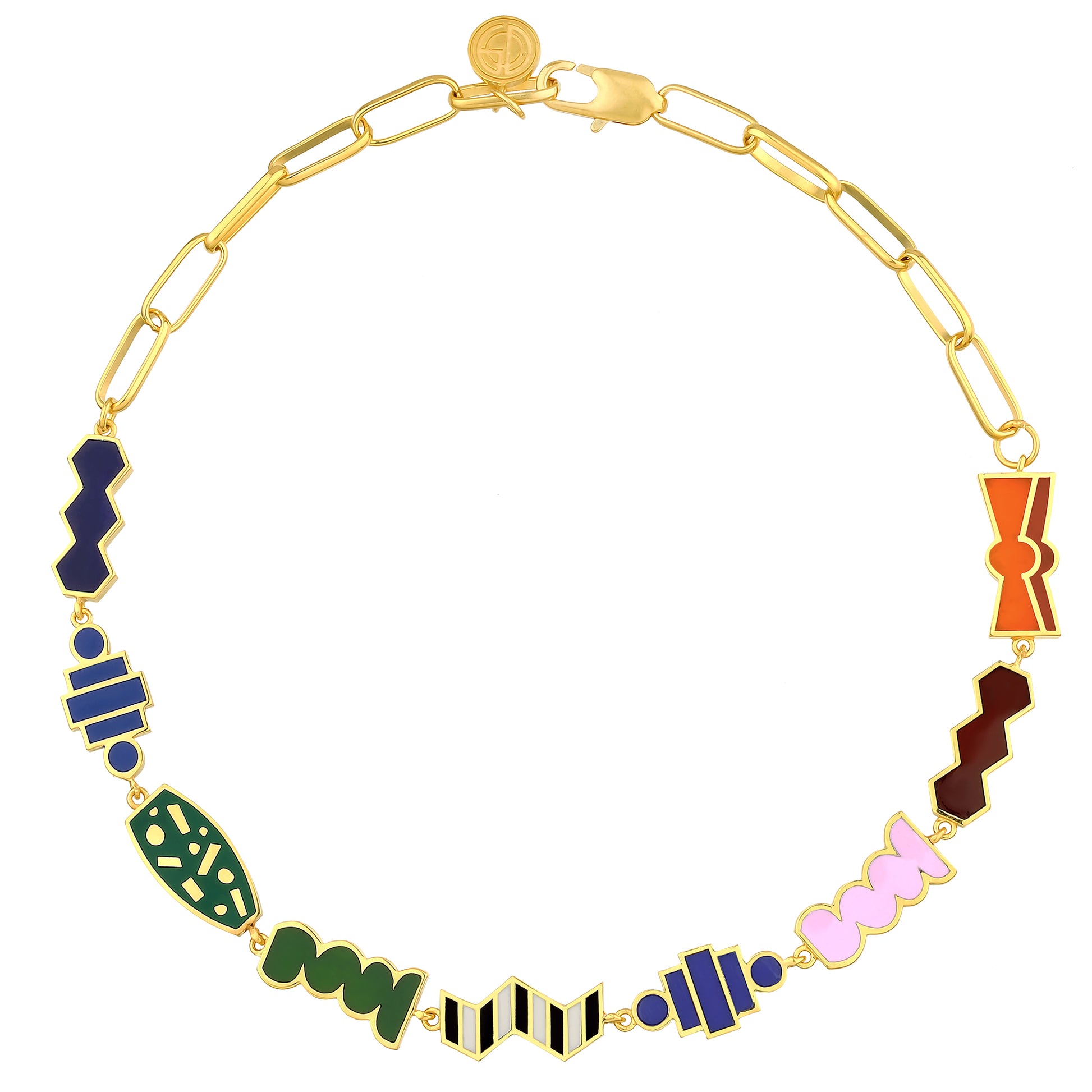 18 ct gold-plated brass necklace features multi-color enamel.