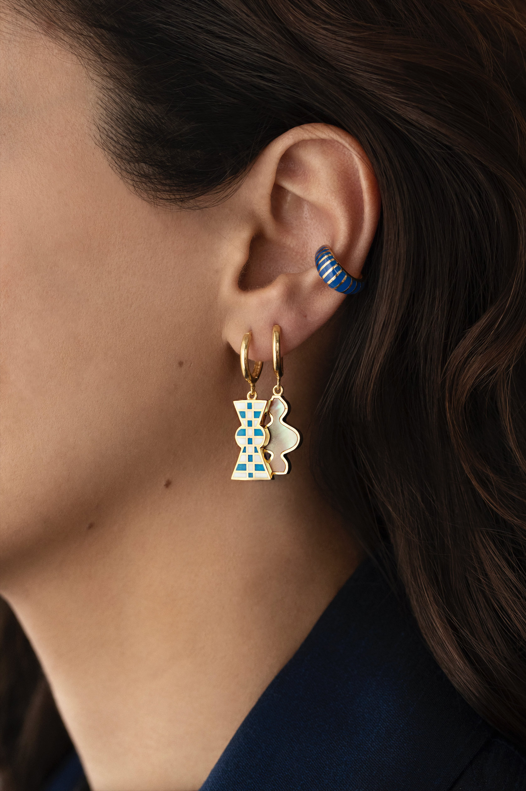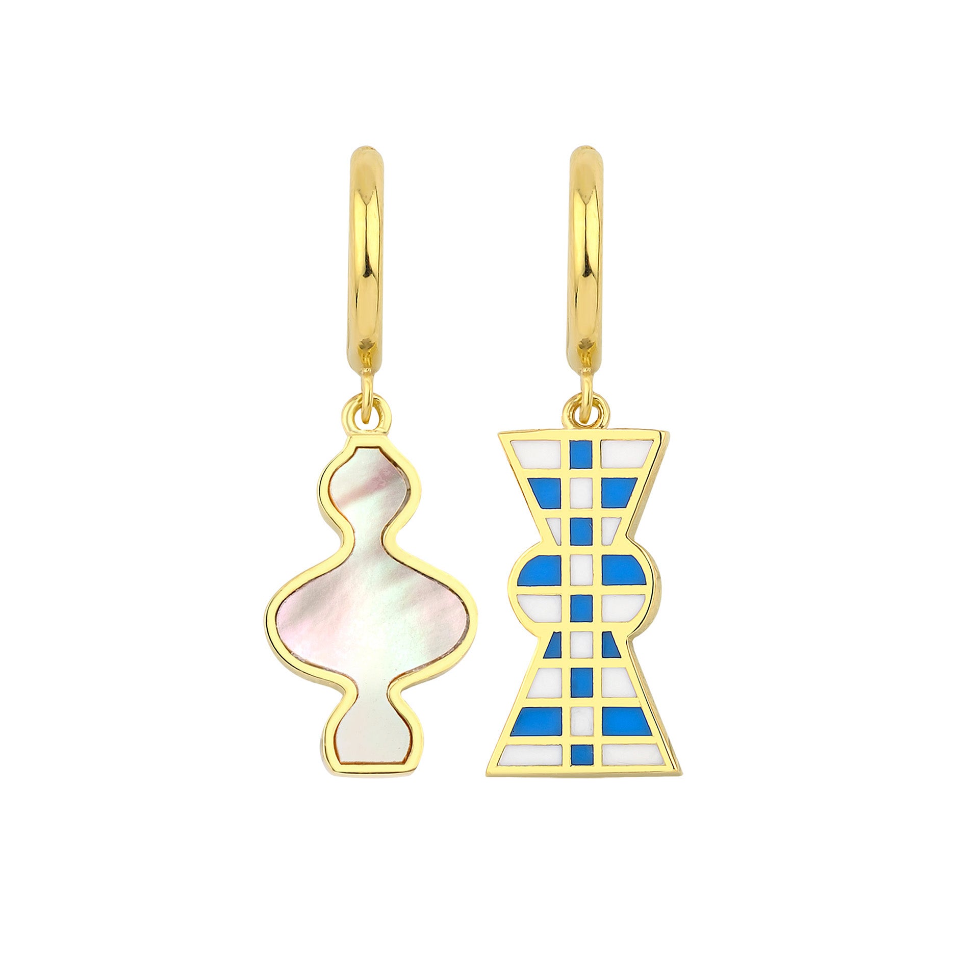 18 ct gold-plated brass earrings featuring multi-color enamel and Australian mother-of-pearl handcrafted inlay.