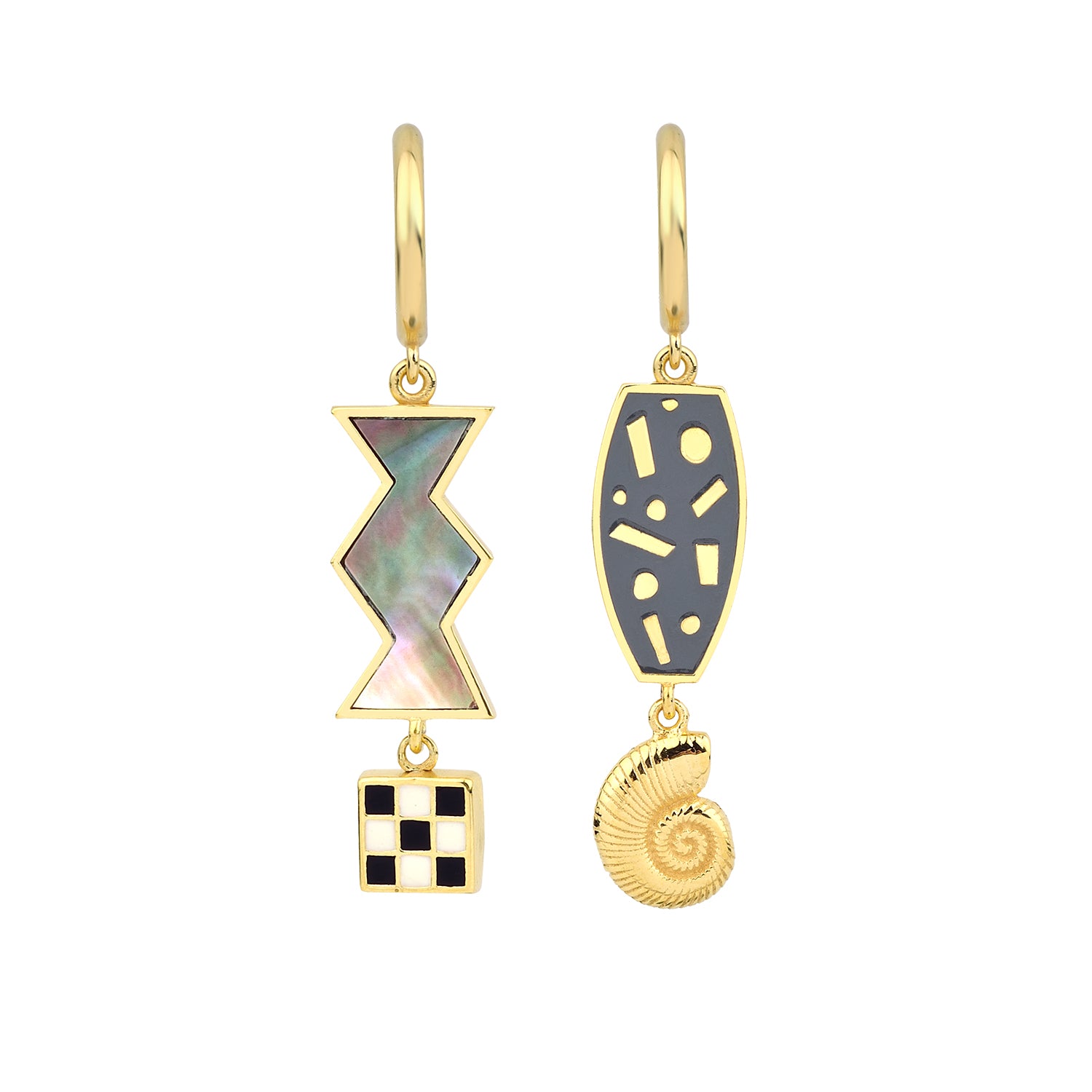 18ct gold-plated sterling silver earrings featuring enamel and Australian mother-of-pearl handcrafted inlay.