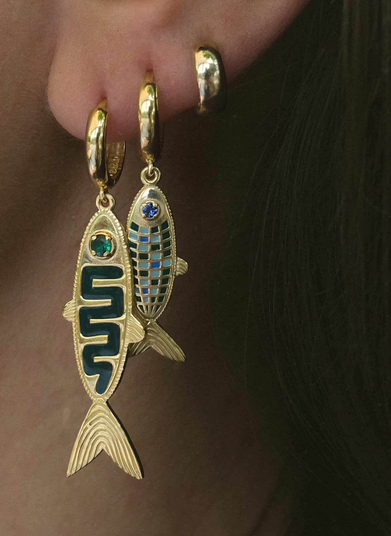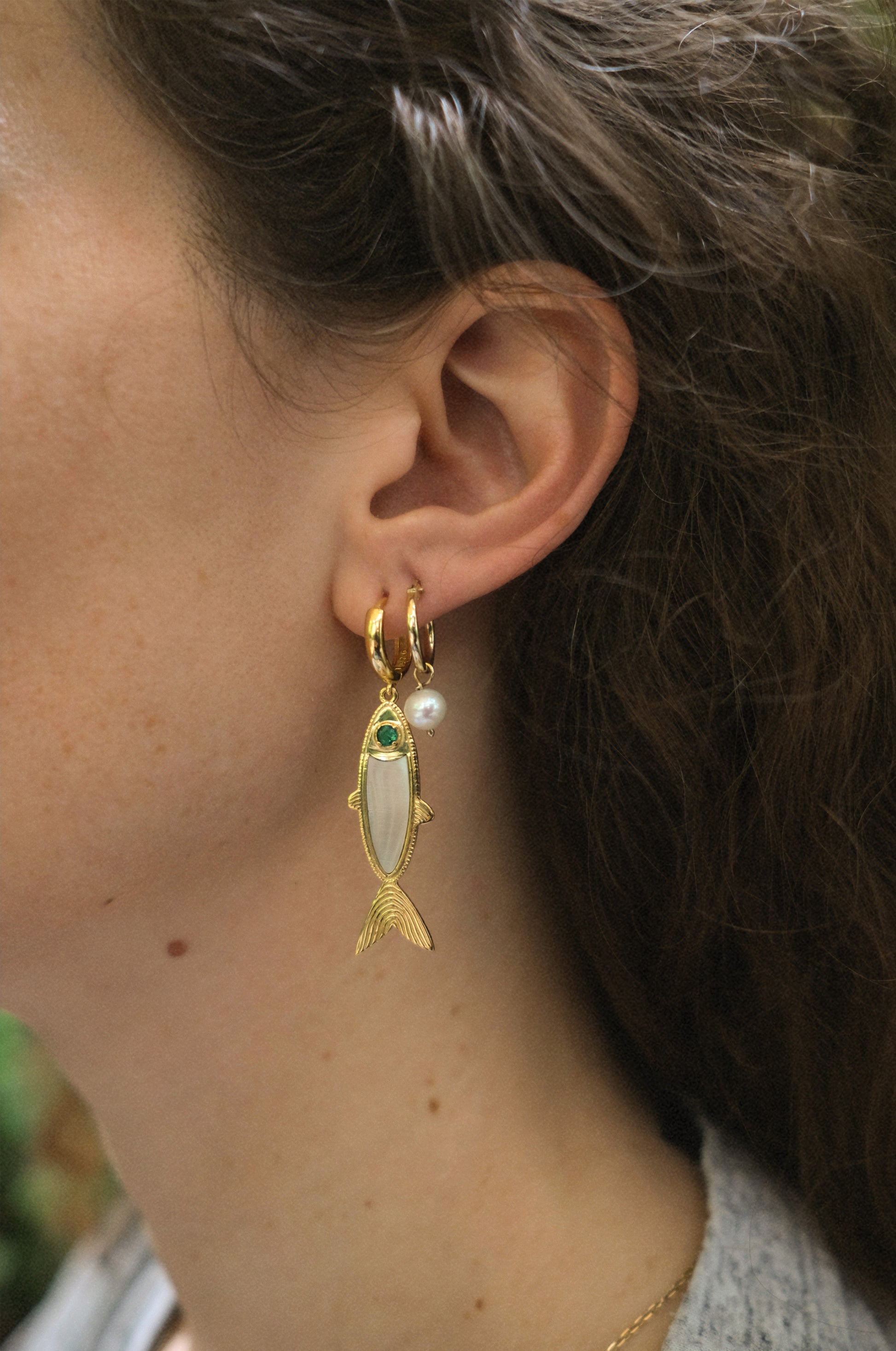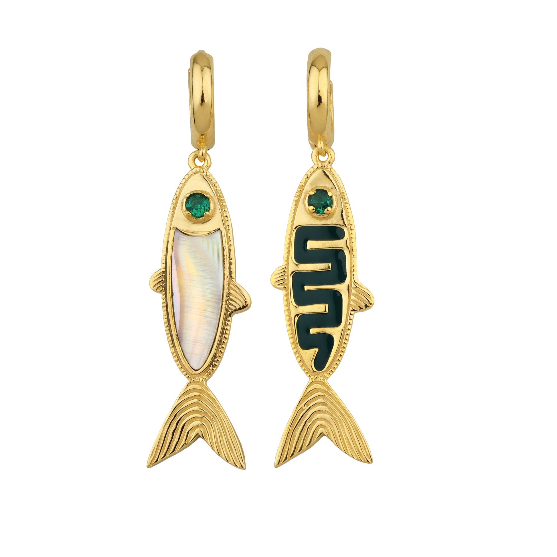 18ct yellow gold-plated sterling silver earrings featuring forrest green enamel and Australian mother-of-pearl handcrafted inlay.