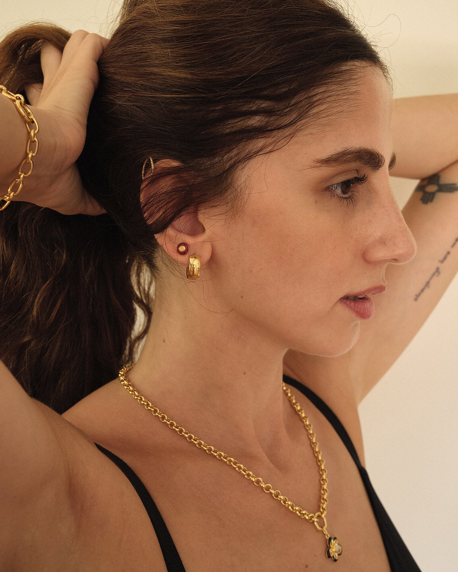 18 ct gold-plated sterling silver earring featuring enamel and embellished with Opal stones.