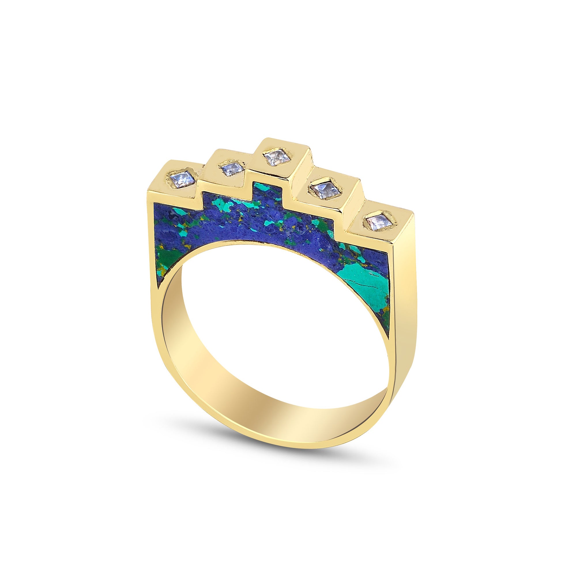 14 ct solid gold ring featuring Indigo inlay and embellished with Lavender Sapphires.