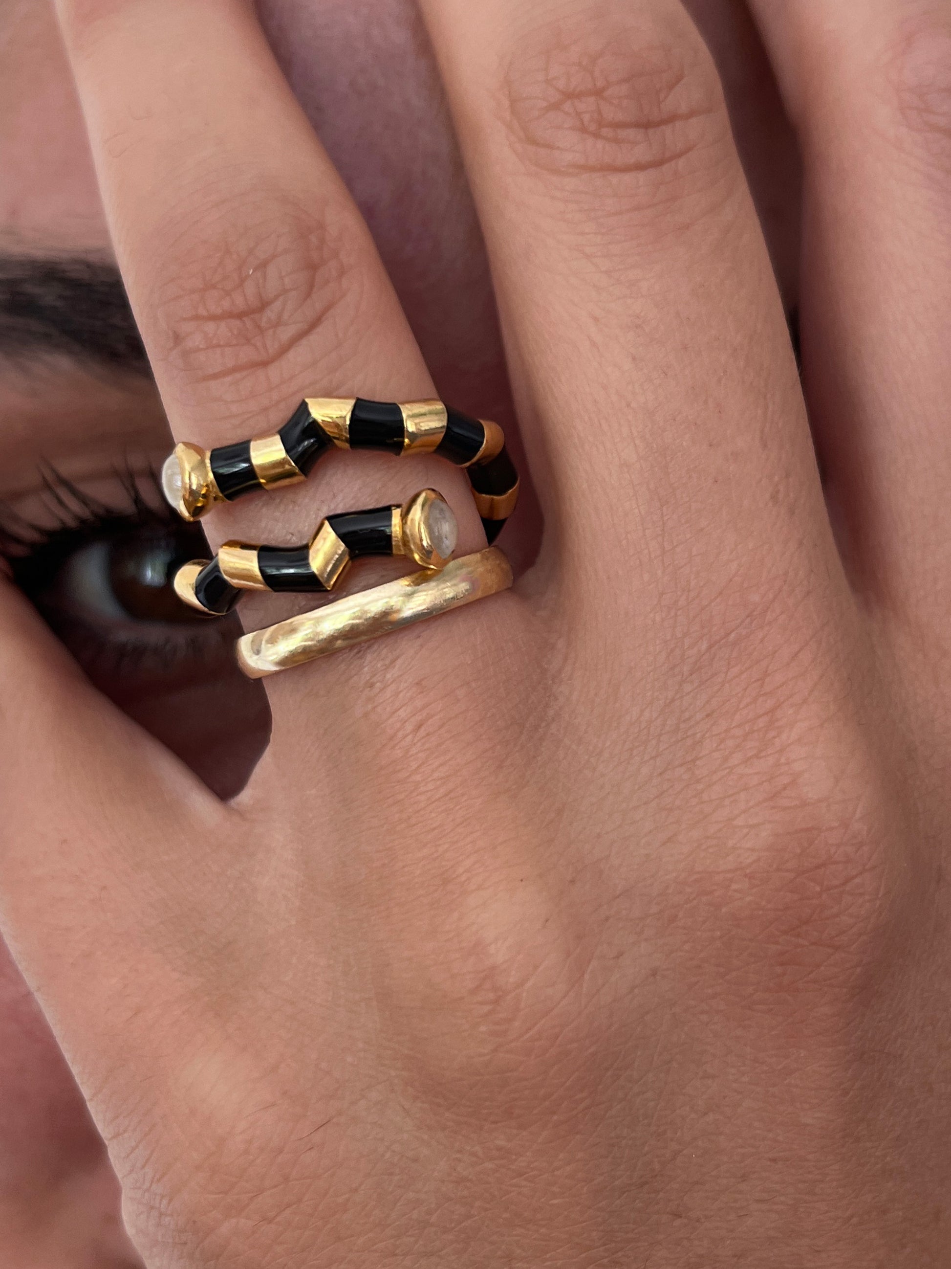Inspired by the character 'Oblina' from the children's TV series 'Real Monsters,' the Oblina ring encapsulates the spirited playfulness of our childhood, now translated into a sophisticated and whimsical grown-up adornment.