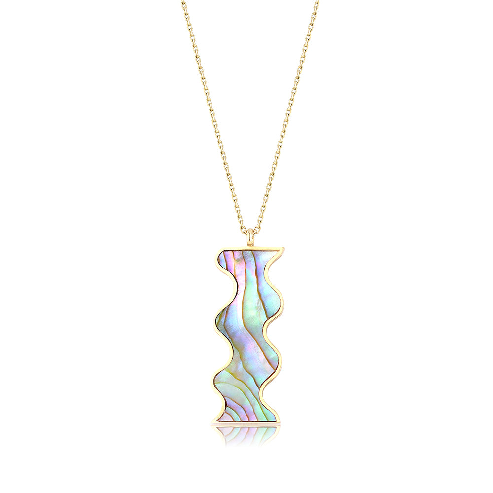 14 ct solid gold necklace featuring mother-of-pearl handcrafted inlay.